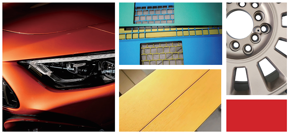通過有機(jī)/無機(jī)包覆,在鋁片表面形成一層均勻致密的致色層,使得鋁顏料具有高金屬質(zhì)感和遮蓋效果、耐候性、耐酸堿等優(yōu)異性能,具有豐富多彩的顏色效果。有機(jī)彩鋁是有機(jī)色粉和銀漿接枝,采用高分子保護(hù),顏色豐富穩(wěn)定,耐溫良好。無機(jī)彩鋁是水性銀漿包覆氧化鐵,類似珠光效果同時具備高金屬質(zhì)感,耐高溫,耐酸堿。廣泛應(yīng)用于粉末涂料、汽車涂料、油墨、3C、UV等行業(yè)。